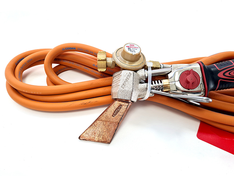 A complete roofer soldering kit designed for precision, comfort, and long-lasting performance. Ideal for professionals working with zinc, copper, or lead in roofing applications.