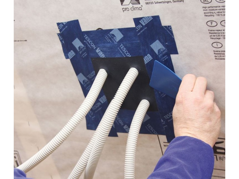 KAFLEX MULTI is a flexible EPDM grommet that enables simple, rapid, and permanent airtight sealing of up to 16 cables through membranes, roof underlays, and wall wraps. Designed for durability and ease of use, it’s ideal for complex installations that require multiple cable penetrations without compromising the air or weather barrier.