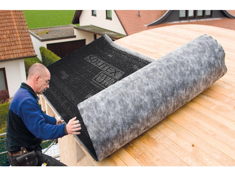 High-performance roofing underlay with 3D mesh for drainage, ventilation, and acoustic buffering under metal cladding.