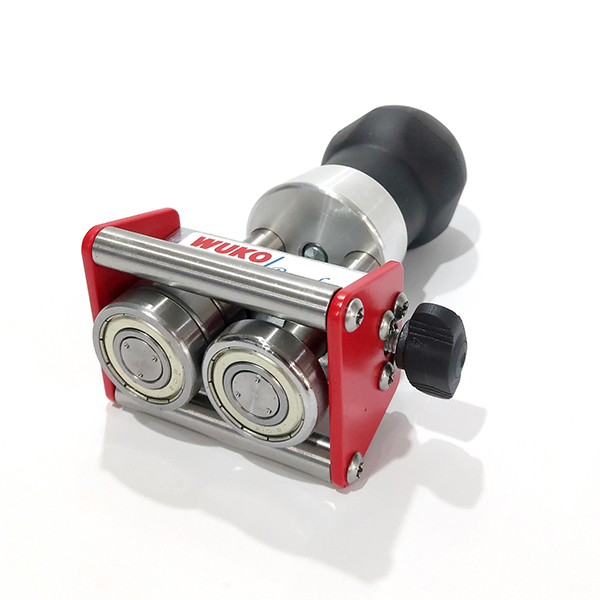 A compact bender equipped with an angled bending disc, designed for clean bends up to 100 degrees. The engraved centimetre and inch scale on the upper shaft makes setting the bending height quick and simple. With two roller stops, two support rollers, and a removable handle, this tool is easy to use and versatile, especially on coated or springy materials.
