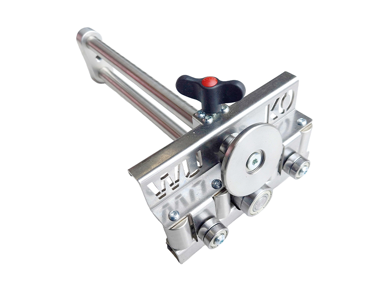 The WUKO Uber Bender 6200 features an angled bending disc for precise bending of sheet metal up to 100 degrees. It ensures clean results while protecting delicate materials and managing spring-back, making it suitable for bending along longitudinal beadings.